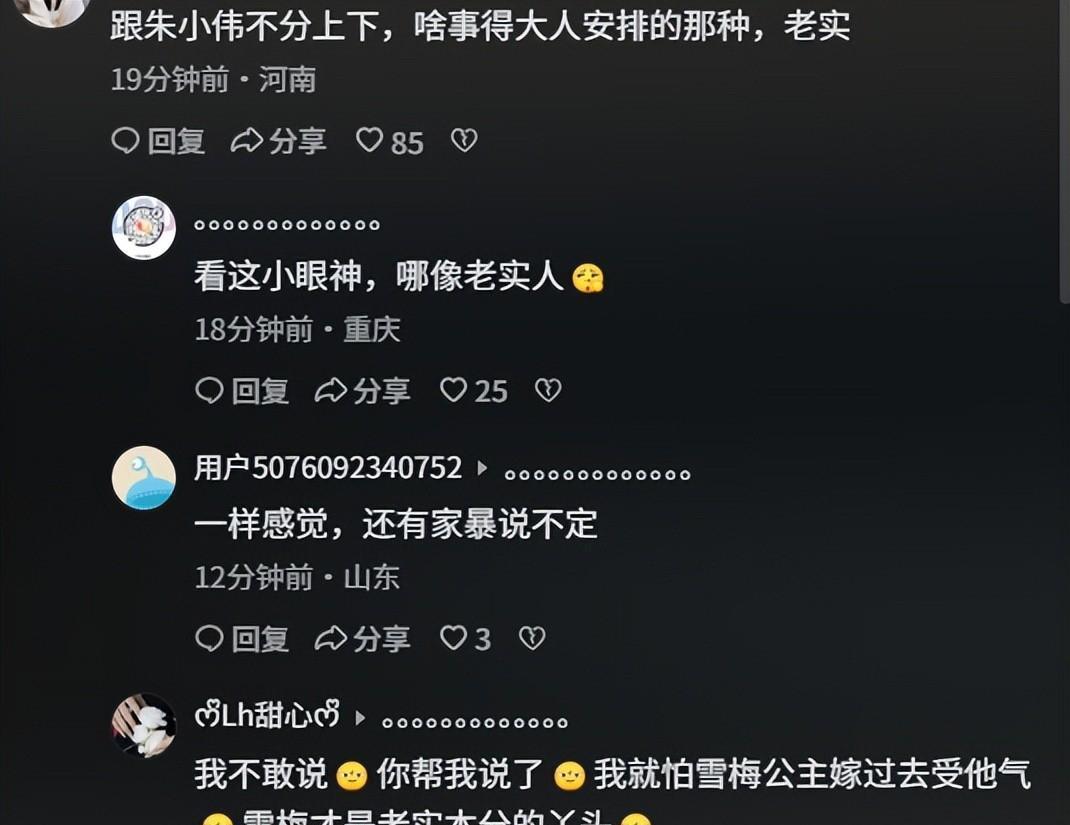 新郎官头一回在大家面前露脸,高高大大,戴着副黑框眼镜,透着股书卷气,看着就稳重。有意思的是,这小伙子眉眼间竟跟朱小伟有几分像,背影更是神似大衣哥本人,难怪网友打趣说“不是一家人,不进一家门”。原来,这位新女婿就是邻村的普通庄稼汉,人实在,这恰恰是大衣哥最看重的——他从没指望靠女儿攀什么高枝,只求她能找个真心人,平平安安过日子。